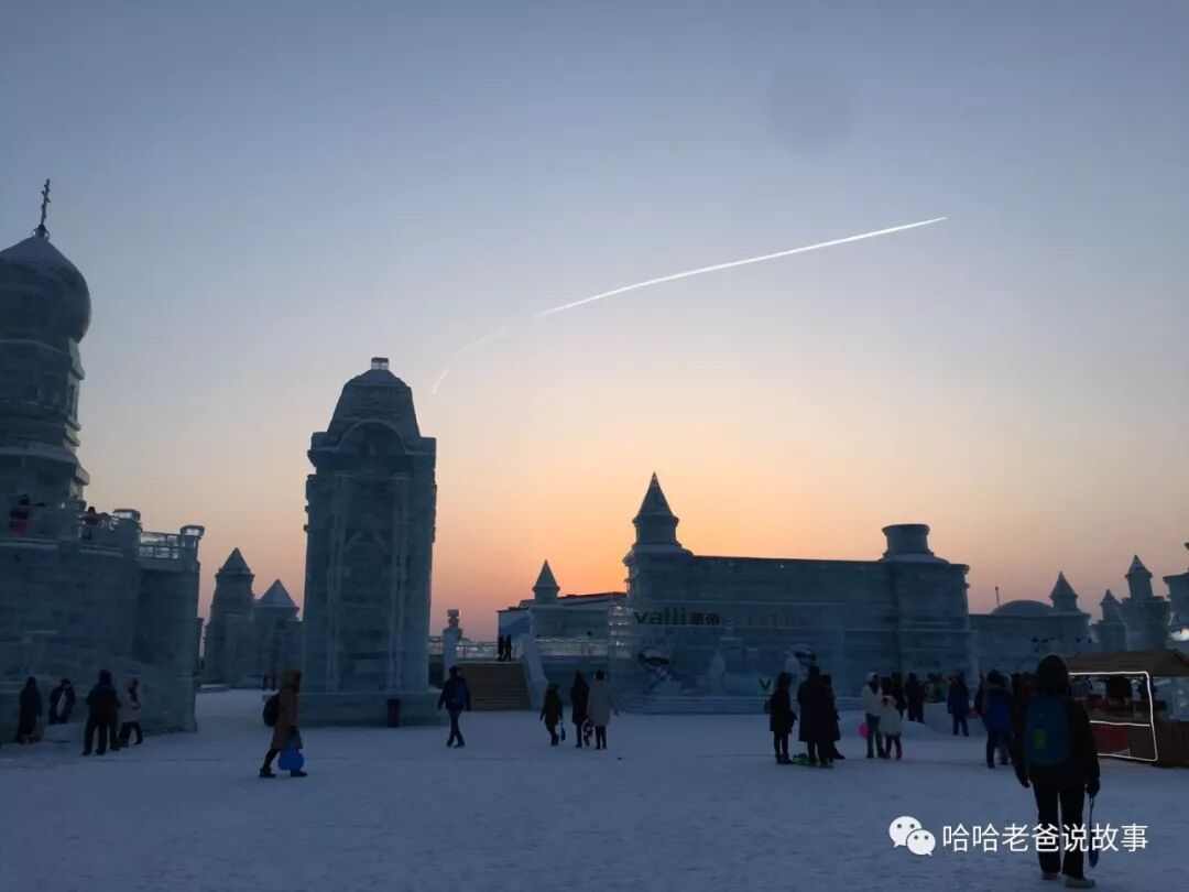 晚霞中的冰雪大世界(哈哈老爸摄)