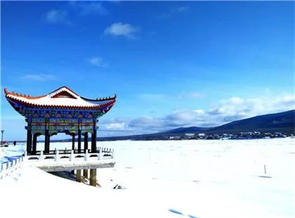 不冻的江水中升腾的水雾遇冷,在树上凝结为霜花,松柳凝霜挂雪,黛玉披银,如朵朵白银,排排雪浪,十分壮观。从远处看正是传说中的玉树琼花,美不胜言。(属于自然奇观,因此能否看到需要大家的运气和缘分),午餐灶台地锅鱼(富有农家风情的大锅台加以柴火慢炖,独特的秘诀精制而成,是一道经久不衰、营养丰富的美味)。后乘车前往中国最后的一个木屋村—【锦江木屋村】