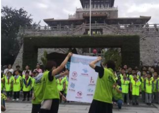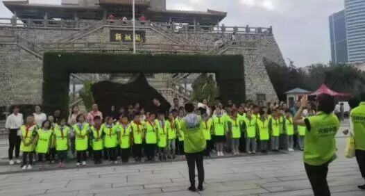 九点钟大家准时在解放阁下集合,由无痕组织的老师首先开展了活动前的讲解和准备工作。队员们穿上统一的志愿者服装,排起整齐的队伍,嘿,还真像那么回事儿!认真聆听志愿者老师布置任务,还学习了回答问题的手势,哈哈,对这次的活动真是满满的期待。