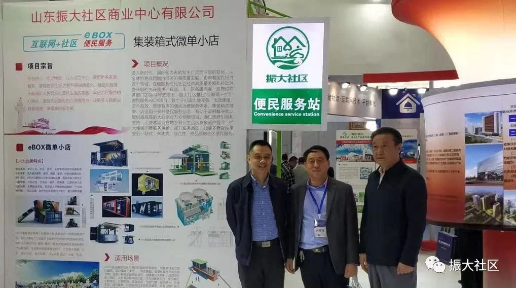 10月25日,由济南市政府、山东省商务厅共同主办的第五届(济南)电子商务产业博览会暨第二届泉城电商大会在济南高新国际会展中心举行,振大社区“互联网+社区”便民服务eBOX应邀在市中区展区展出,eBOX便民服务站首次公开亮相,展出了eBOX集装箱式微单小店、以及东西部扶贫协作社区电商扶贫、街道办社区综合服务、西城高科·振大社区绿A农产品、智能生鲜无人值守售货柜、社区终端服务以及社区公益广告等项目。