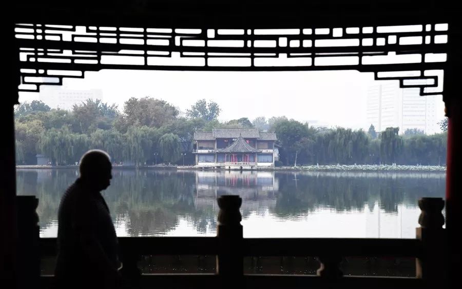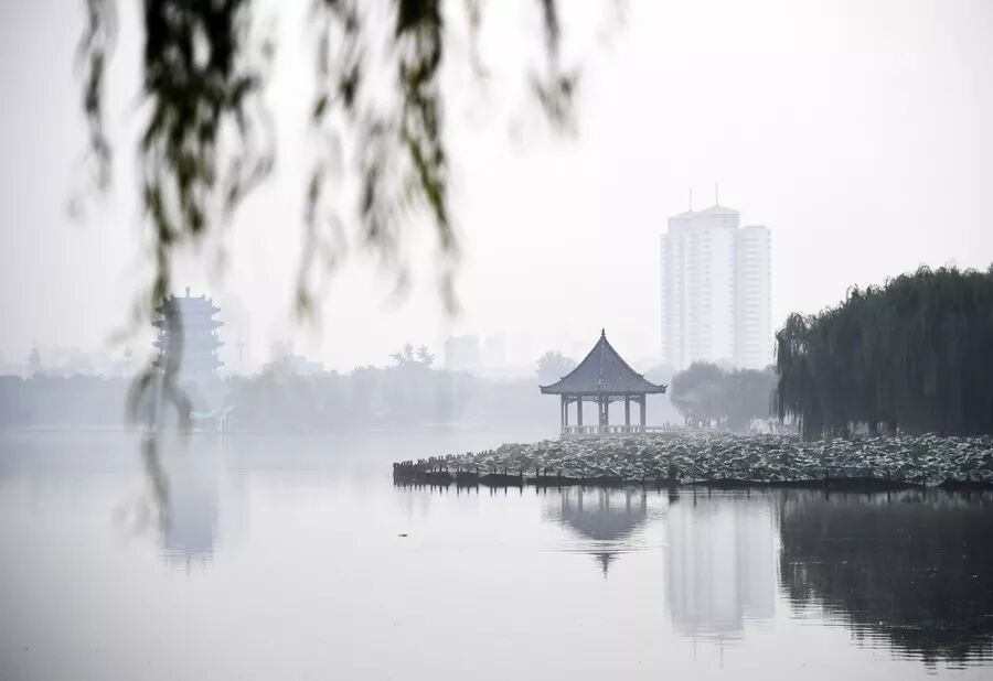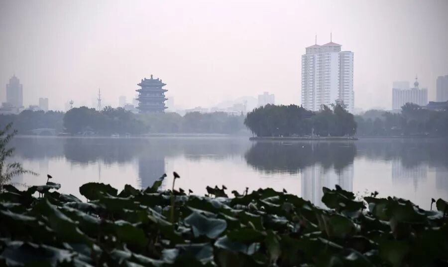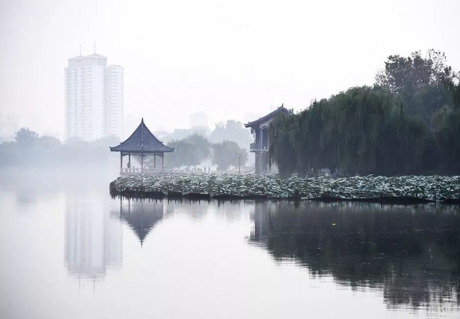 9月18日,晨雾缭绕下的山东济南大明湖。