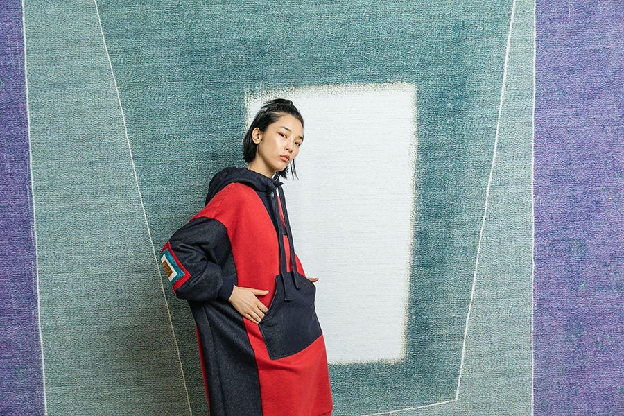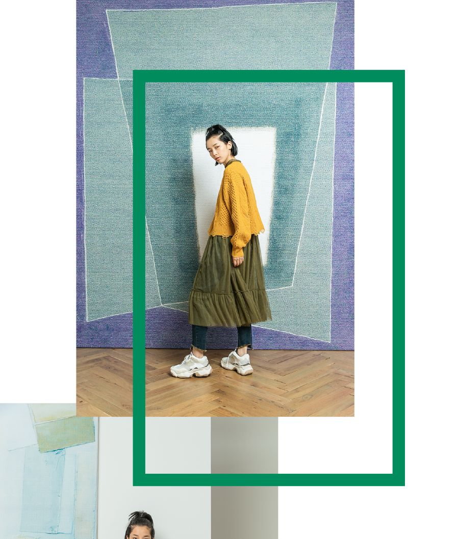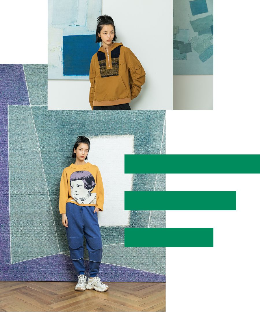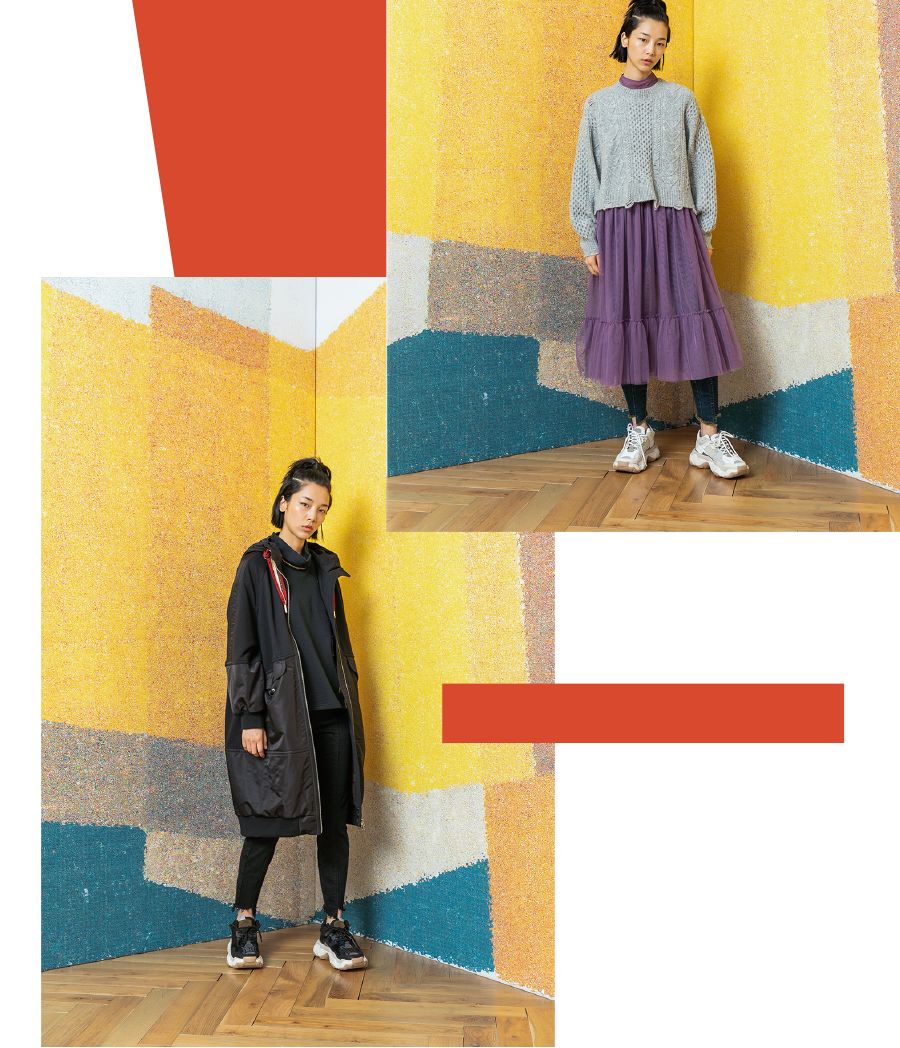 破烂风格毛织与飘逸纱裙的搭配组合产生强烈对比,但穿着时整体看起来轻柔浪漫。长款卫衣搭配紧身长裤或者彩色长袜,轻便且具有廓形感。