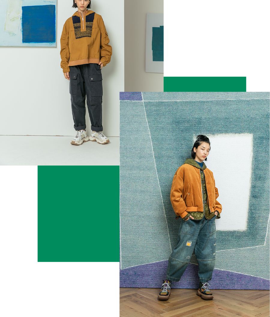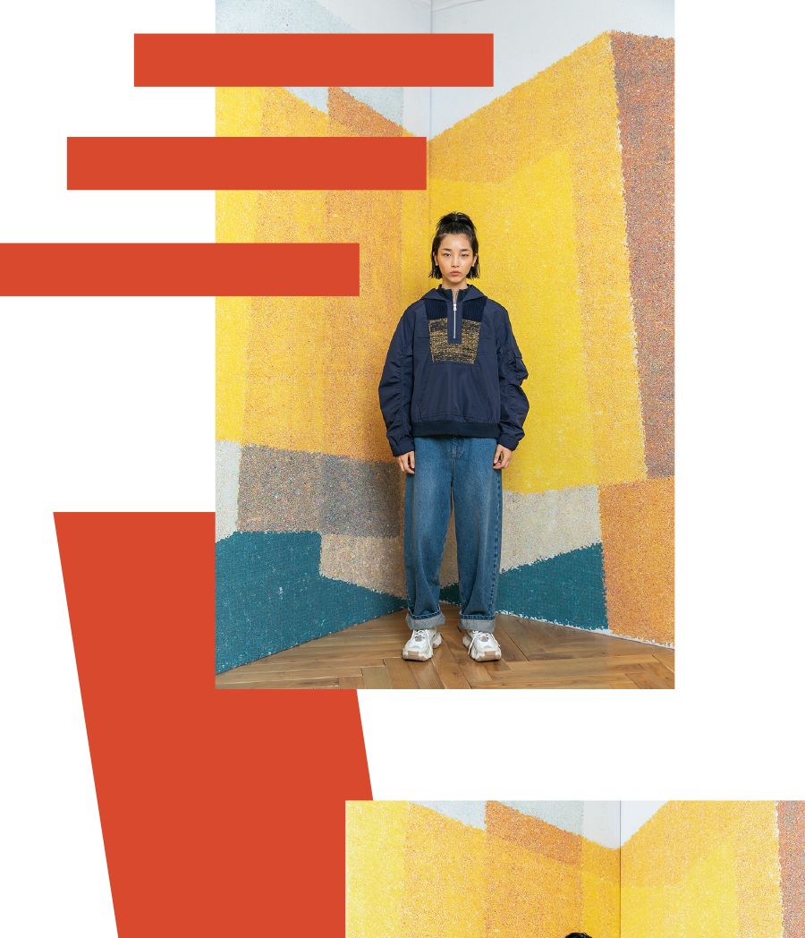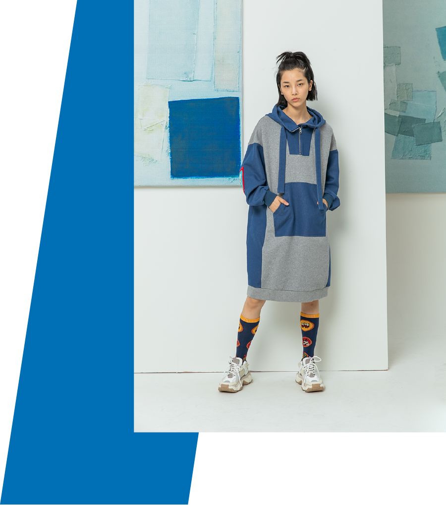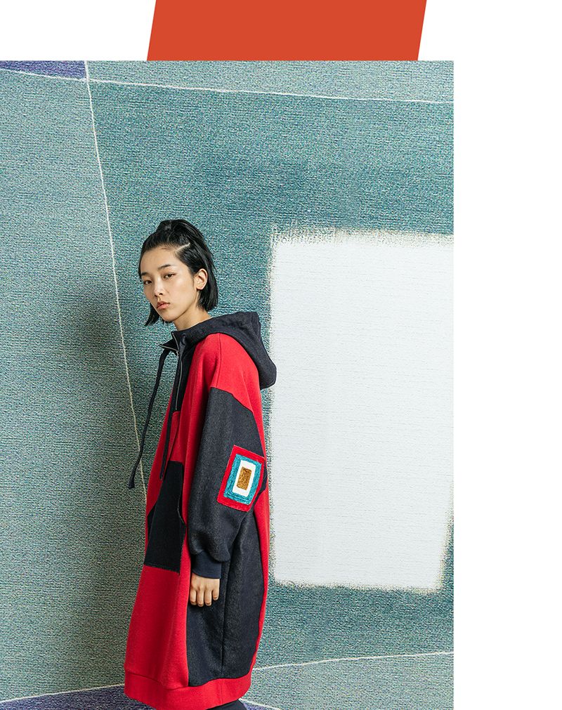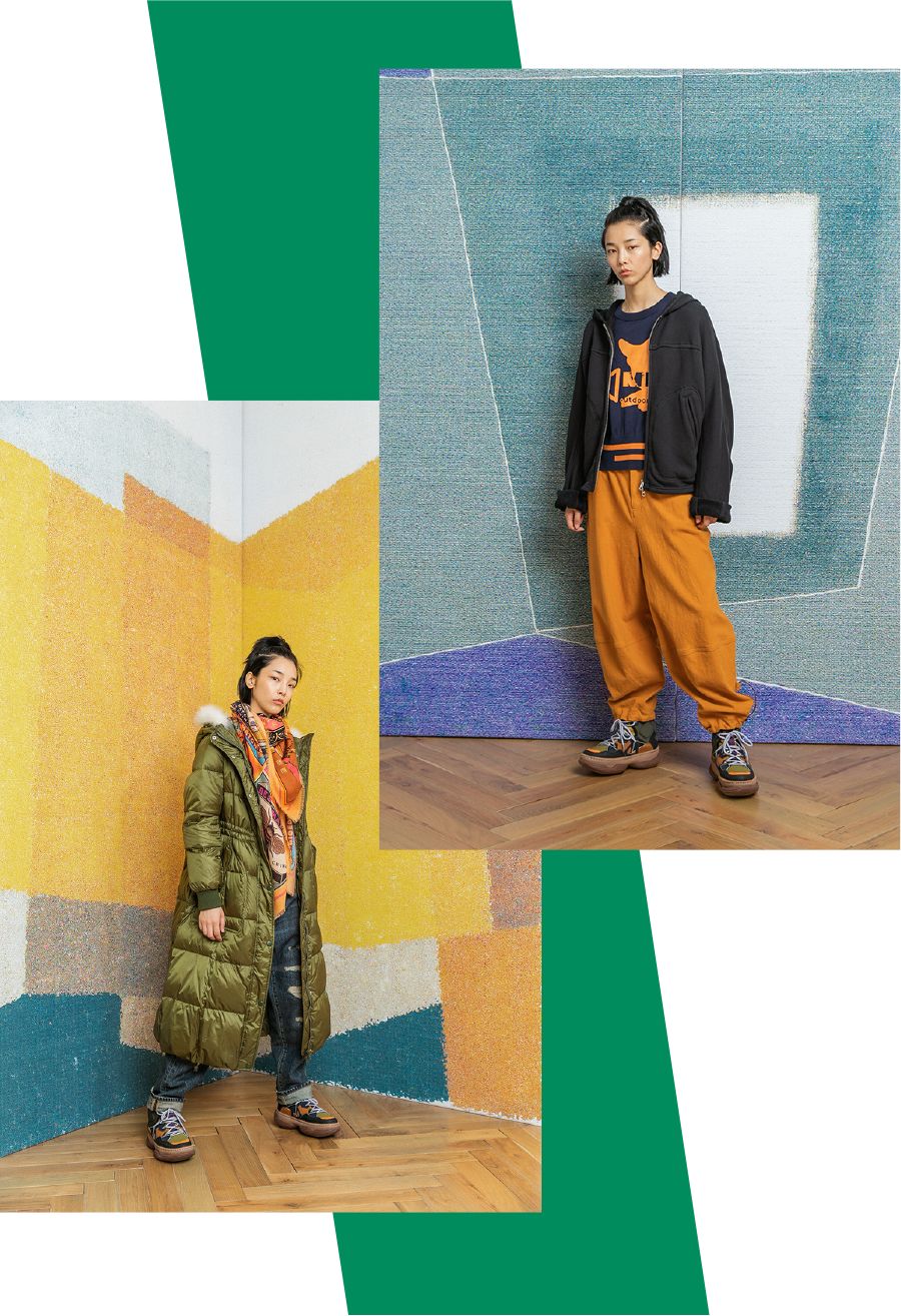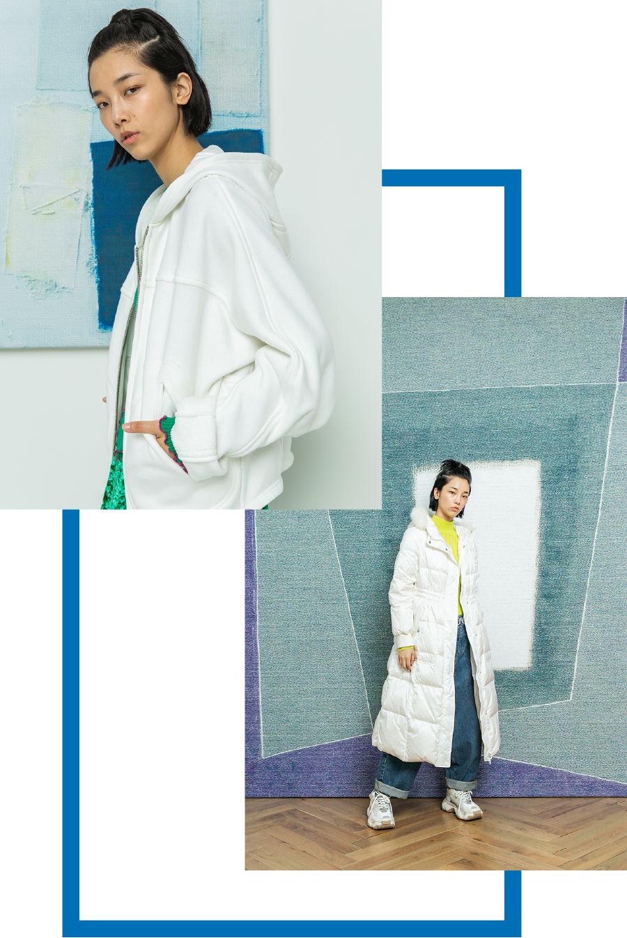 卫衣采用了厚实保暖的面料,可内搭可外穿,造型效果多样。外套则使用具有光泽度的面料,设计简洁又十分醒目。