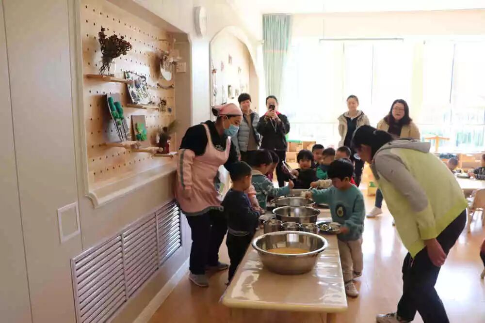 家长们进入班级,观察孩子在园的常规状态,感受自主教育模式下孩子们在室内外活动中自由选择、自我服务、自发交流、自主学习的情况。