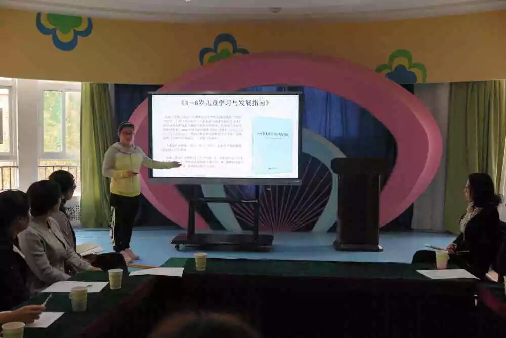 半日体验中,许园长热情迎接各位家长入园,并由孔涛和郑亚楠老师向家长介绍了“幼儿园的自主性教养理念及幼儿一日活动流程”。