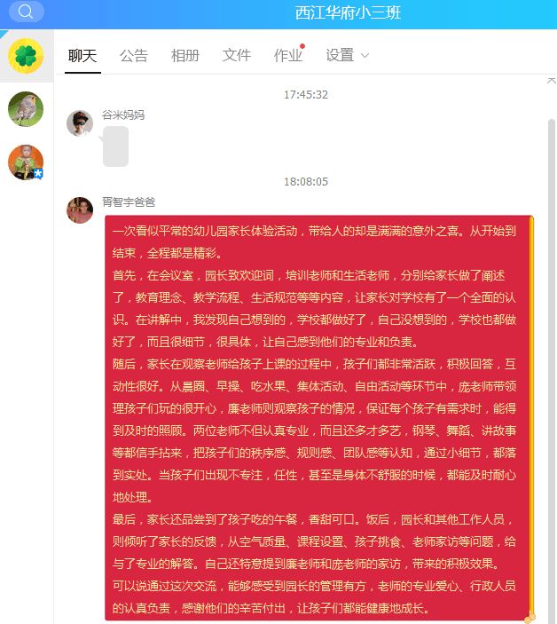 很多家长感慨, “孩子们的活动真丰富”、“在幼儿园比在家吃的多”、“老师们真的很辛苦”……他们密密麻麻填写着半日体验记录。