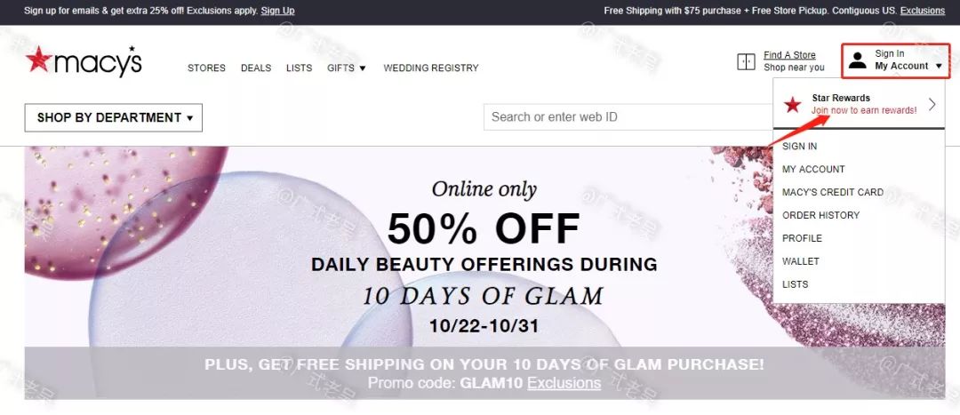 官网:https://www.macys.com/p/ten-days-of-glam/