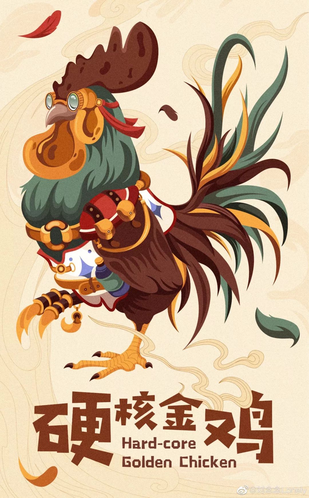 黑金版海报配色高级以黑底配上金沙效果的文字前景用笔触勾勒了一只金鸡与背景完美融合在一起