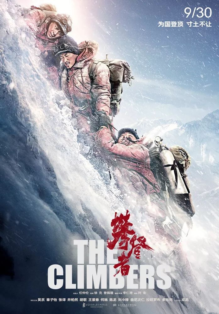 电影《攀登者》由徐克、曾佩珊监制,李仁港编剧兼导演,阿来编剧,吴京、章子怡、张译、井柏然、胡歌、王景春、何琳、陈龙、刘小锋、曲尼次仁、拉旺罗布、多布杰领衔主演,成龙友情出演,上海电影(集团)有限公司出品,上海电影股份有限公司发行,影片将于9月30日国庆档全国公映。
