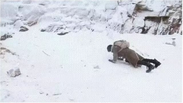 最后是王俊凯教科书级别的摔倒挽尊。王俊凯在拍戏爬雪山的时候,不小心摔倒了。