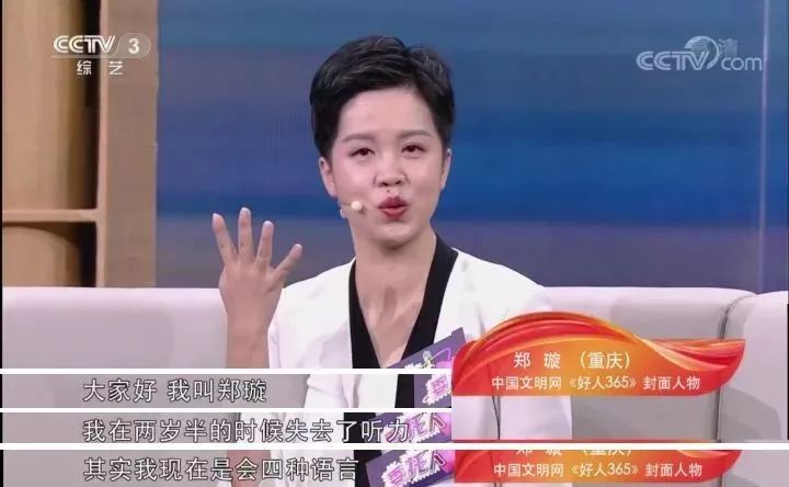 郑璇是独生女,两岁半的时候有一次生病发烧,因医疗事故造成严重听力损失。