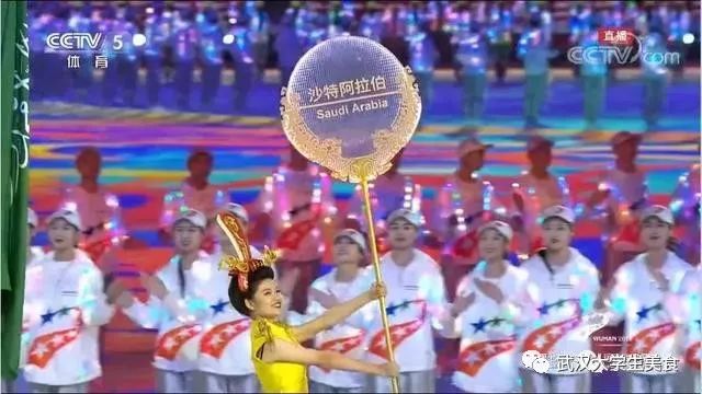 武汉纺织大学16名服装表演专业的同学作为举牌手引导运动员代表团入场,并参与开幕式仪式部分演出。
