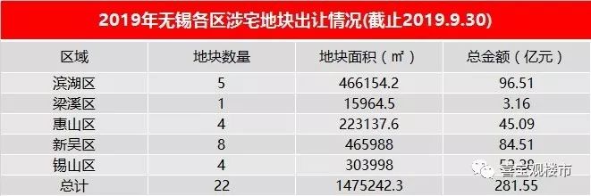 前三季度,无锡新增万元地块10宗,总数达到31宗,4个区域最高楼面价突破过往。这其中惠山区土地市场表现可圈可点,涉宅地块成交数量与锡山区并列第二,滨湖区的太湖新城板块虽土地出让面积不及新吴区,但土地成交楼面价远远领先其它区域,梁溪区受供应影响,仅成交一宗。