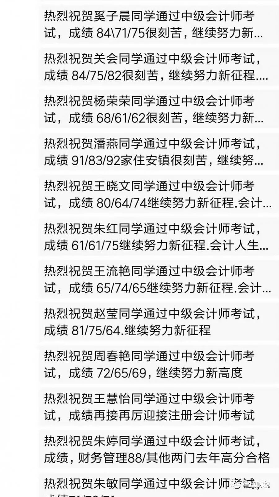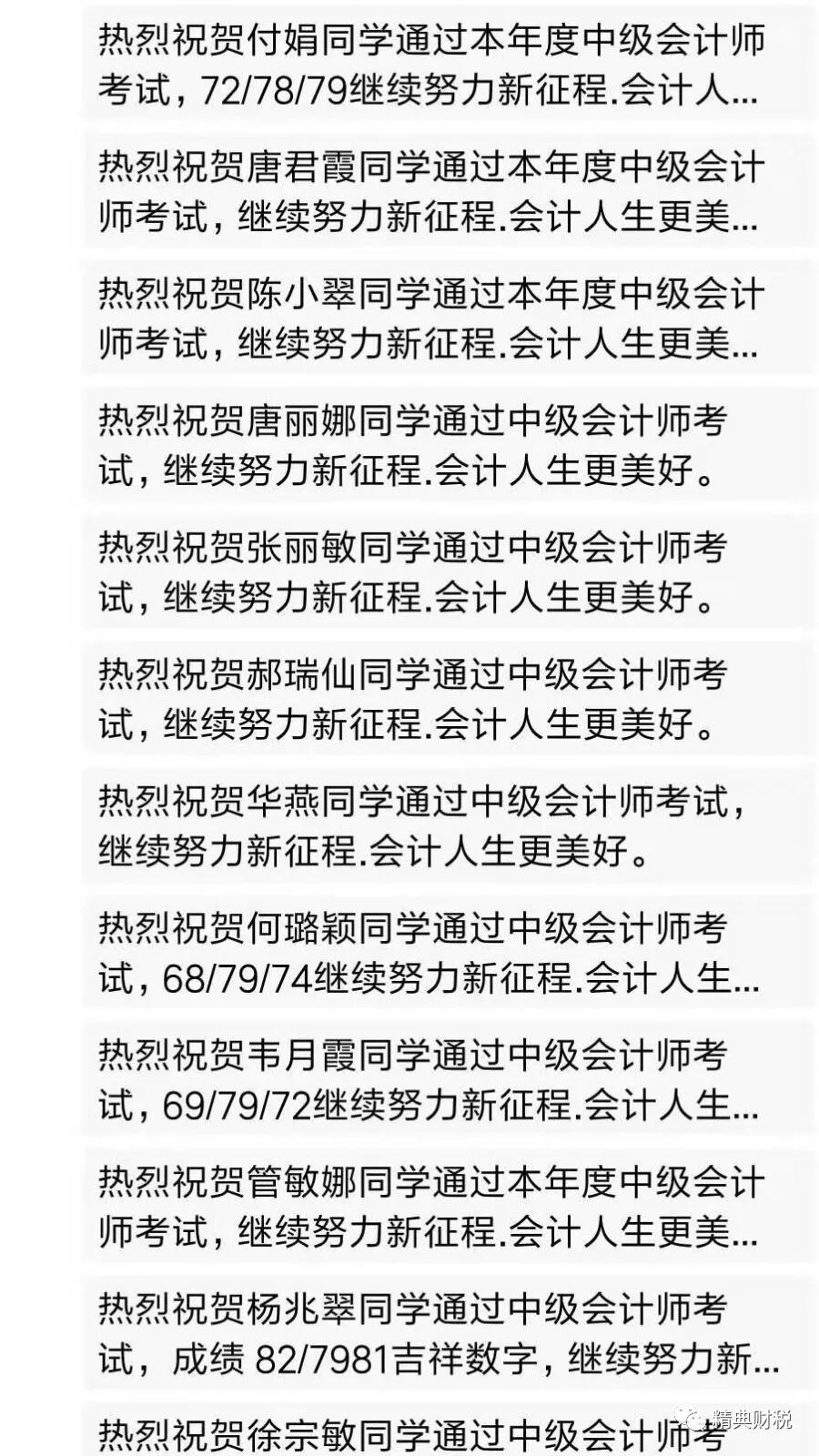 在这里经典财税祝以下学员通过了中级: