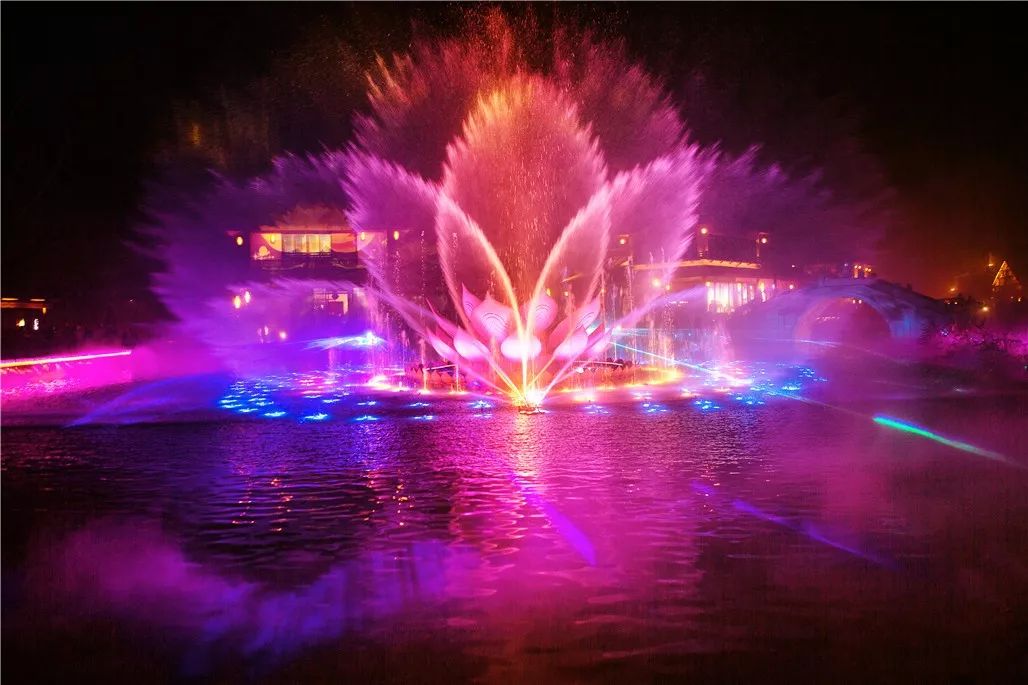 五光十色的绚烂水幕,每一秒钟都如梦似幻般震撼心弦。很多人说没看《禅行》就等于没去过拈花湾,晚上记得一定去看看。