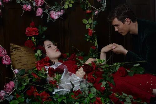 “王子走近玫瑰篱笆,见那篱笆上开满了又大又美丽的花,那些花在他面前自动分开,留出一条路来,王子就走了进去,篱笆又自动合拢了。”