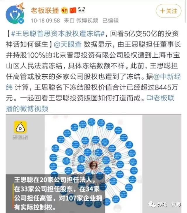 有消息爆出,王思聪普思资本股权遭冻结,此消息一出,网上哗然。