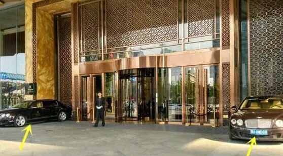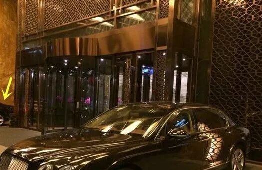 酒店门口停两辆宾利飞驰,一般上档次的酒店都会停不少豪车。这两辆宾利飞驰都是王思聪家的,为什么说是他家的呢?因为这个酒店就是他家开的,武汉万达瑞华酒店。