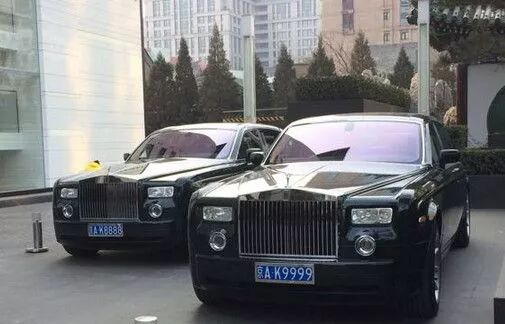 京AK8888和京AK9999,目前是劳斯莱斯幻影,这两辆幻影都是北京王府半岛酒店接待车,从上世纪90年代初就用劳斯莱斯接送贵宾,当时用的是劳斯莱斯银刺,后来变成了劳斯莱斯幻影。