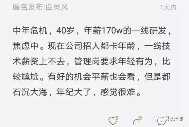 按照这程序员的说法,其目前的薪水已经到了天花板,如果想要继续提升,就必须转型管理岗位,然而自己的年龄也到了40岁,去外面应聘比不上那些年轻有为的,即使想要平薪过去,别人也不见得收,突然觉得自己的人生就被定局了。