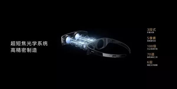 据介绍,华为VR在体积上比较小巧,重166g,镜腿可折叠收纳,厚度仅为26.6mm,可以进行0-700°范围内的近视调节。采用磁吸式轻柔面罩设计,也比较适合长时间佩戴。核心参数上,3200x1600分辨率,PPI高达1058,90度视场角,70/90Hz刷新率。