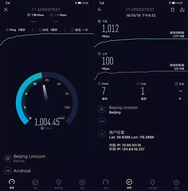 值得注意的是,华为Mate30 Pro 5G在本次测试中,延迟仅7ms,抖动也只有1ms。这意味着,华为Mate30 Pro 5G的5G网络不仅速度快,而且网络十分稳定。这样的5G网络体验无疑是十分难得的。即便如此,在当下5G测速时,5G测试数据受到网络、内容源服务器、周边环境、在线用户数量等诸因素影响,有一定的波动性属于正常现象。