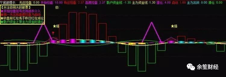 最后一个副图指标是一个关注主力资金的指标,监测到主力资金操作,了解其动向,就可以明确知道自己的进退了,在这里有柱状就说明有资金进场,资金多少用柱状高度表示。