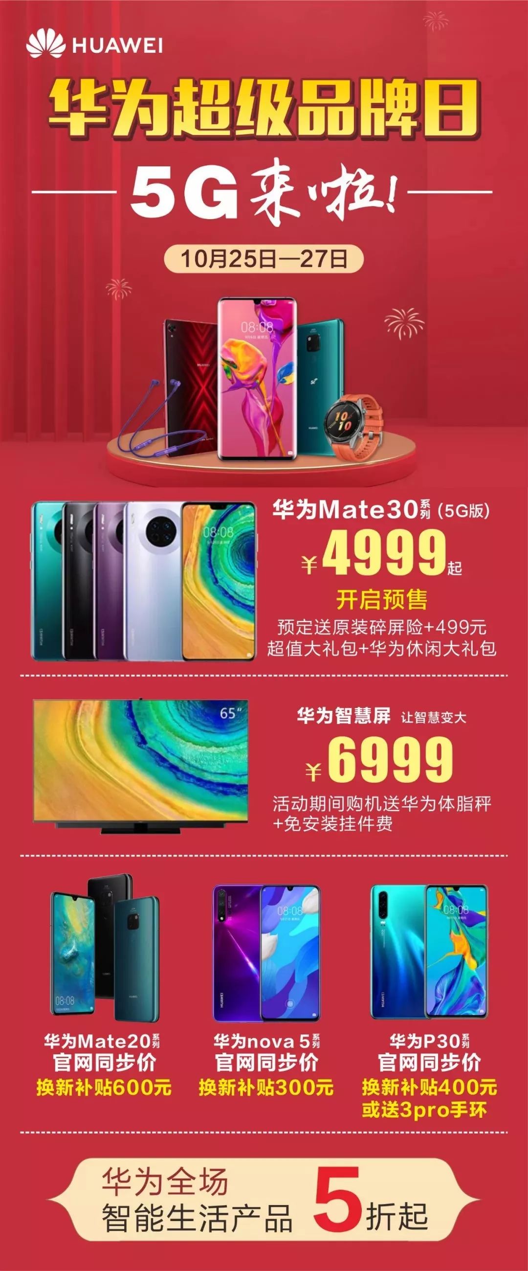 11.1日正式开售 首销当日购机抽奖以旧换新额外补贴30%一等奖 华为照片打印机二等奖 华为车载充电器三等奖 华为原装数据线