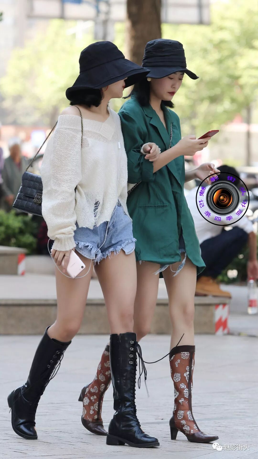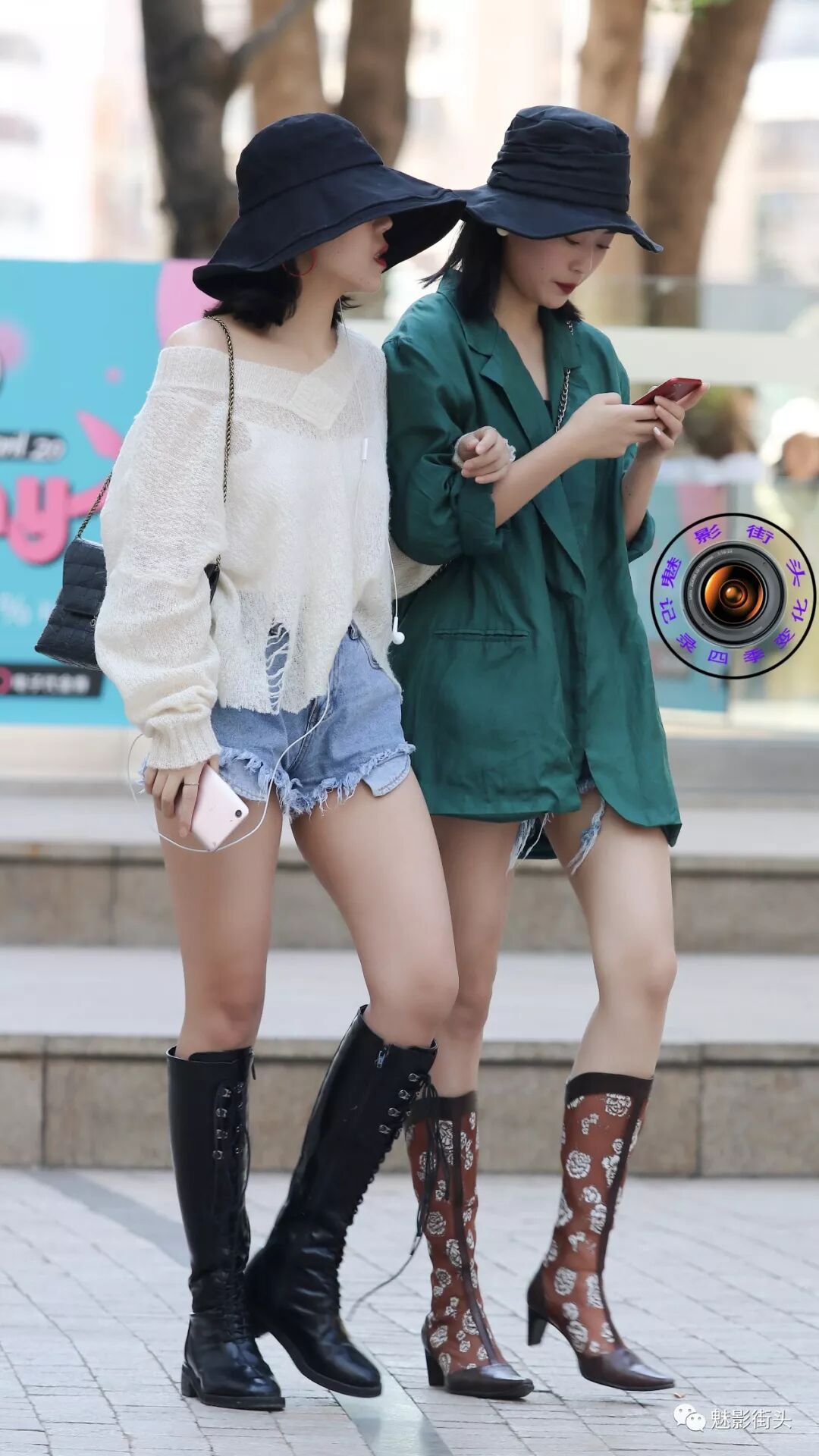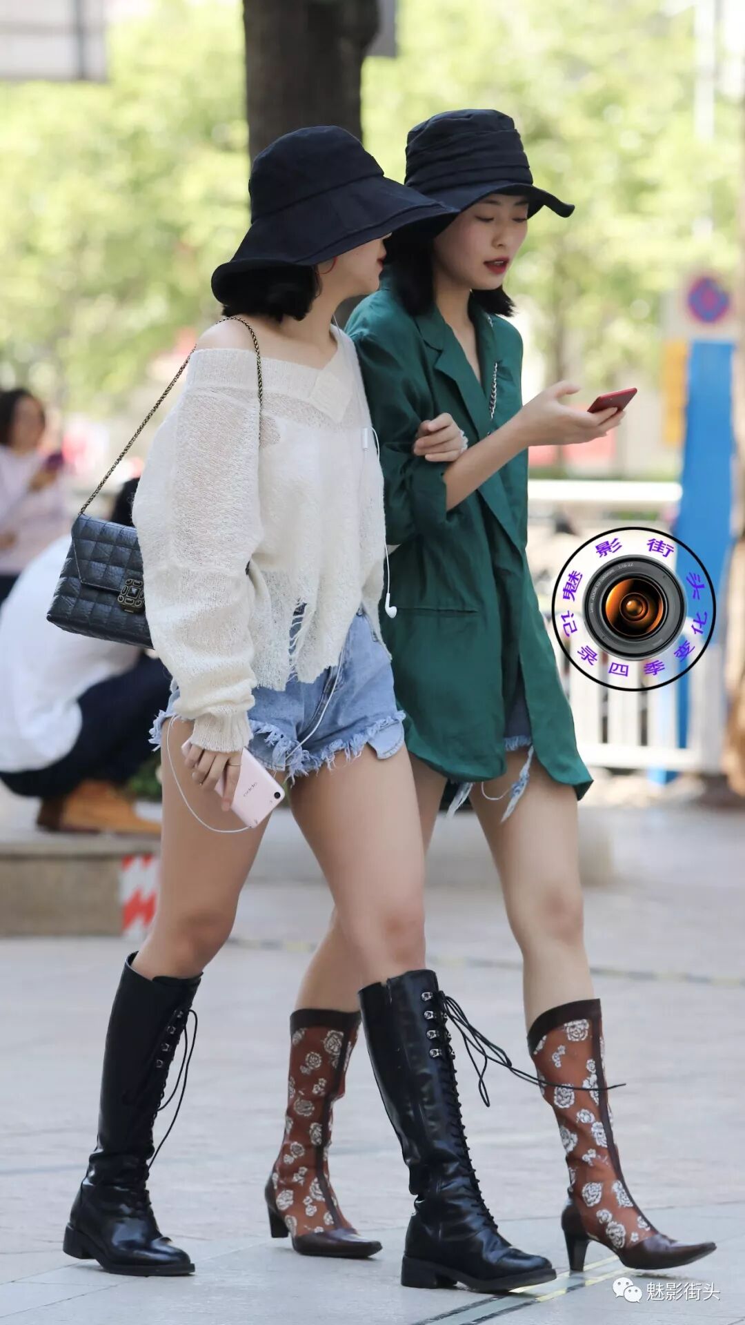 相约逛街的闺蜜,高筒靴的搭配非常有特点。