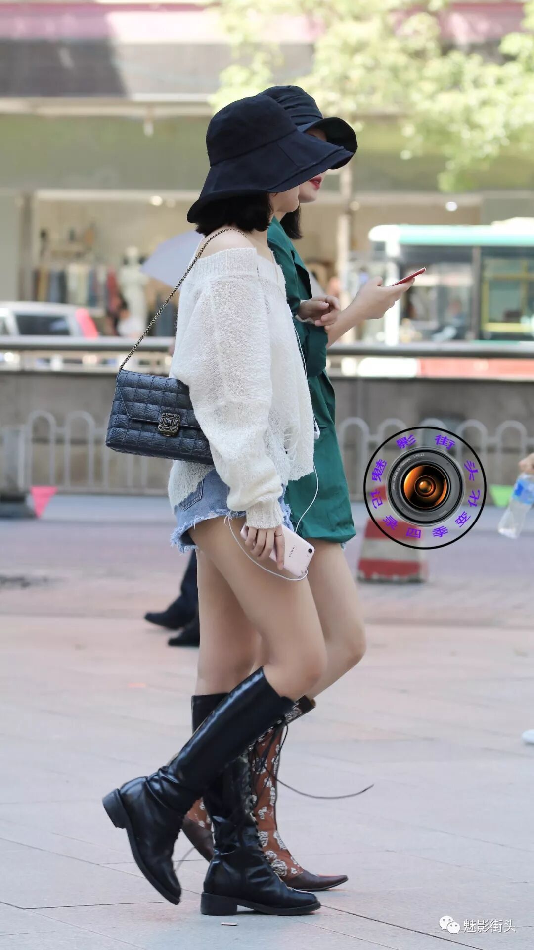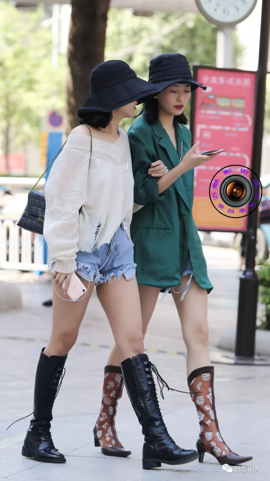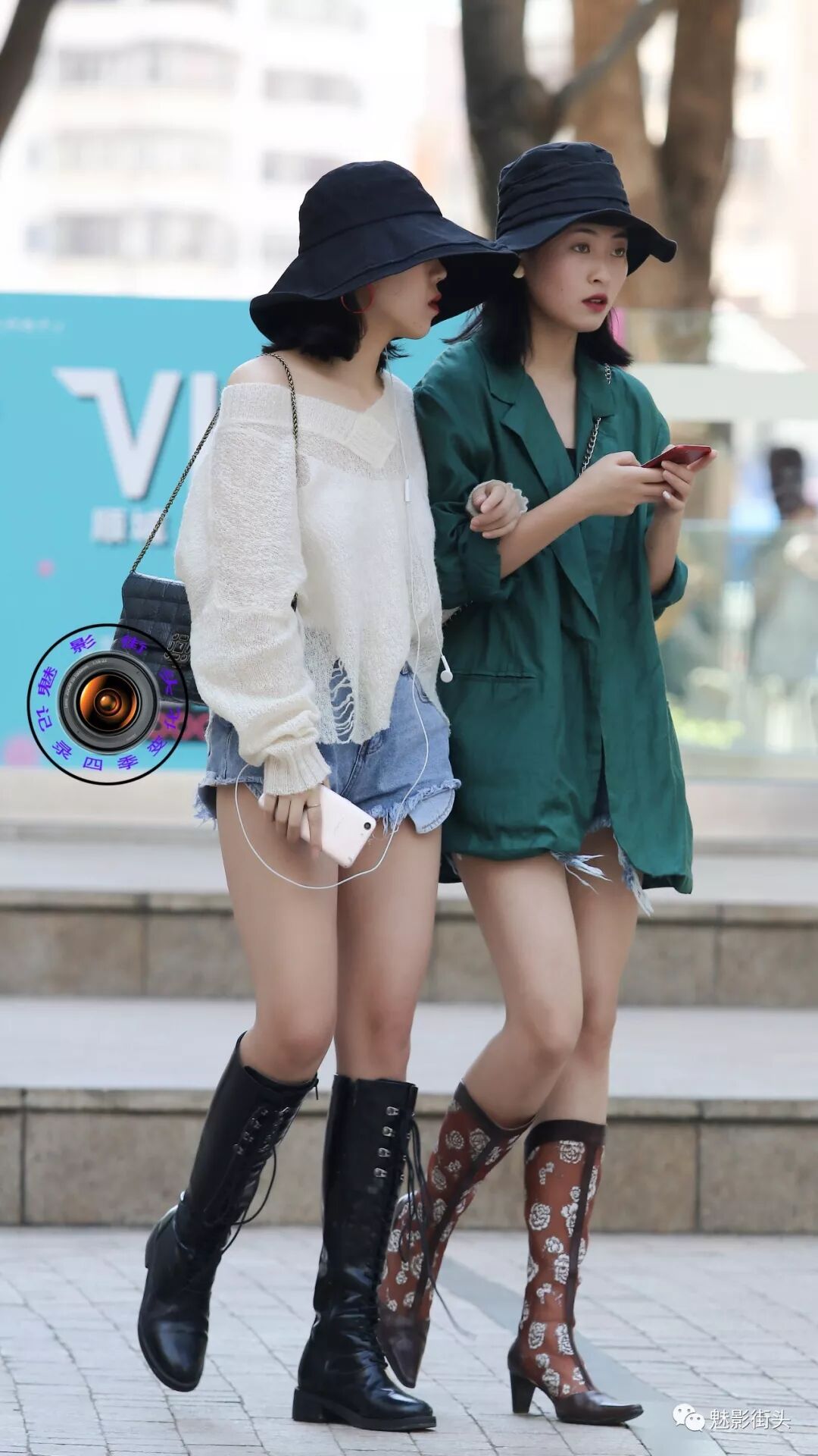 相约逛街的闺蜜,高筒靴的搭配非常有特点。
