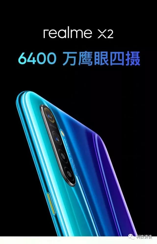 realme x2于2019年9月27日上市,官网售价6+64G为1499元 8+128G为1799元。在拍照方面用后置四摄的组合6400万像素的主摄+800万像素的超广角+200万像素人像镜头+200万像素的微距镜头,前置3200万超清自拍。CPU为高通骁龙730G处理器。搭载4000mAh的电池,采用VOOC闪充4.0的30W快充。屏幕是一块6.4英寸的水滴屏,屏占比高达91.9%,颜色有星图蓝、银翼白。