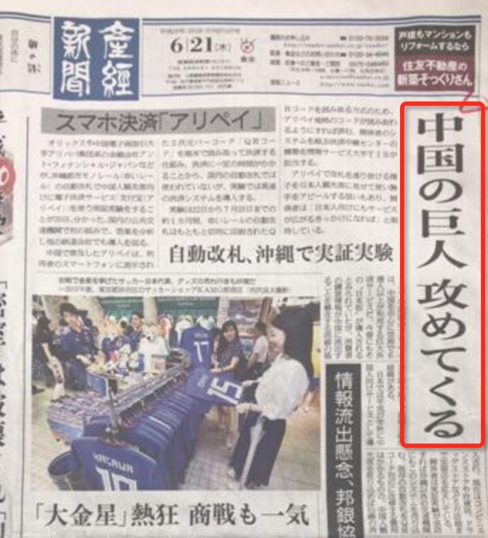 “马云要来了”、“我们的公交车要被占领了”.....,日本媒体甚至不惜动用头版头条大喊:中国巨人打来了!