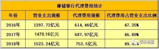 但付出的代价也是很大的,邮储银行的年报显示,2018年,邮储银行的代理费为752.5亿元,占营业支出的49.4%。而2018年的净利润为523.84亿元,这意味着邮储银行的代理费已经超过其净利润额200多亿元。