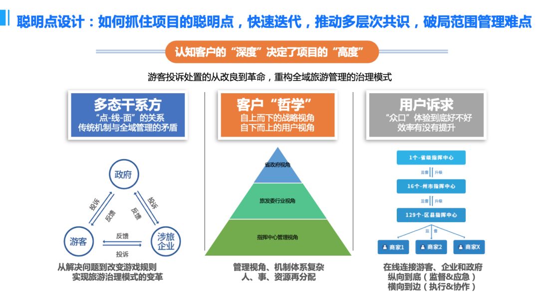 回顾“一部手机游云南”的历程,是一路爬坡一路攀登的过程。在项目管理过程中,项目团队面对的是个巨型产业互联网项目,如何能够做到有效管理,如何能够面对庞大、复杂的交付型项目按时保质的完成,都是摆在所有人面前的难题。
