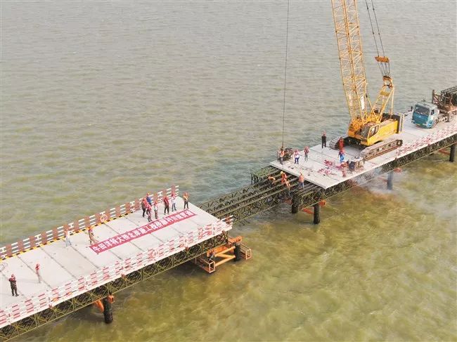 近日,随着最后一跨贝雷梁架设完成,历经6个月日夜奋战,牛田洋快速通道项目控制性工程牛田洋特大桥北岸施工钢栈桥顺利合龙。至此,该特大桥南北岸合计长约2公里的施工主栈桥全部贯通。作为大桥榕江南北两岸的施工“生命线”,栈桥的合龙为材料运输、机械调配提供了保障,为大桥主体施工创造有利条件。据了解,目前牛田洋特大桥已进入实质性施工阶段,正铺开主体结构桩基等施工,牛田洋快速通道项目的路基、桥梁、互通等建设也正加快推进。项目建成后,经金平、濠江和潮阳三区,将北联汕昆高速公路、南接汕湛高速公路,联通国道206线、324线以及金凤、金砂西、澄海路等城市主干道,跨越榕江水道,连接三屿围和牛田洋,成为中心城区快速西环线。