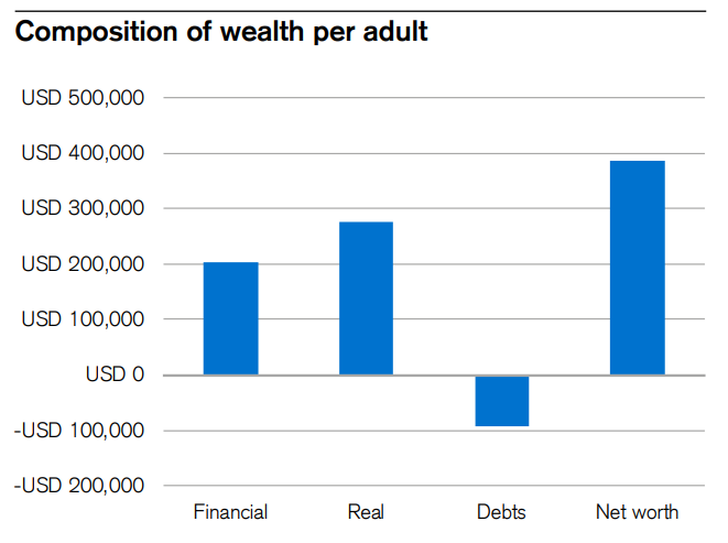 非金融资产,在美国、瑞士、日本财富总资产中的占比,则分别为35%、45%、39%。