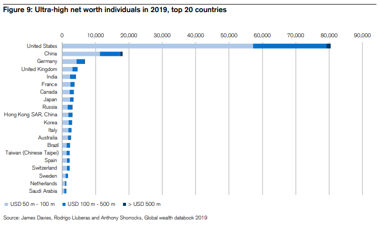 在全球超高净值人群中,有55,920成人的身家至少达到1亿美元,其中4,830人的净资产超过5亿美元。