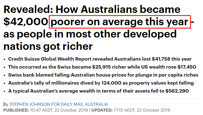1澳洲人均财富减少近4.2万