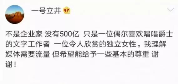 甚至有媒体曝出李亚鹏的女友是一名低调的富豪,身价高达500亿。就在网友们对李亚鹏这位富豪女友的身份感到咂舌的时候,李亚鹏竟然亲自出来澄清谣言了,他发文称女方不是企业家没有500亿,只是一位偶尔喜欢唱唱爵士的文字工作者,一位令人欣赏的独立女性。