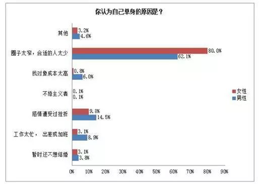 在2.4亿单身人口中,有80%的女性和62.1%的男性,因为“圈子太窄,适合的人太少”单身;