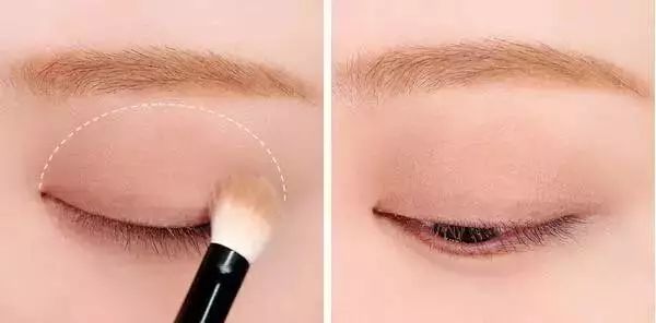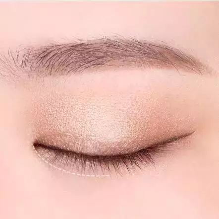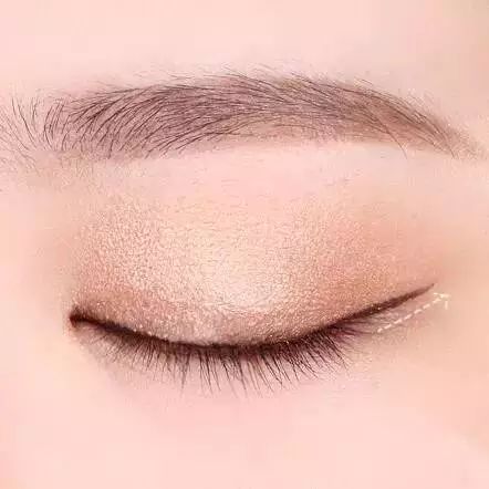 Step3:在上眼睑,白色区域内涂抹上金咖色眼影,呈现层次感。