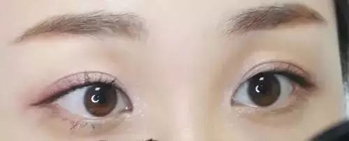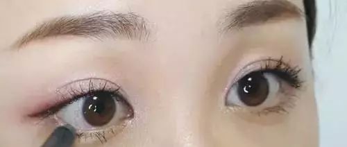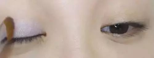 Step4:紧贴上睫毛的根部紧贴画上一条细细的棕色上眼线。