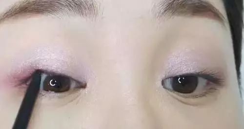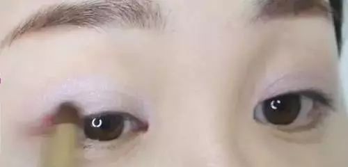 Step 4:用藕荷色珠光眼影在上眼皮处晕染。
