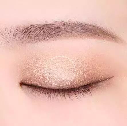 STEP6:在眼球正上方的圆圈内用米色的珠光眼影提亮。