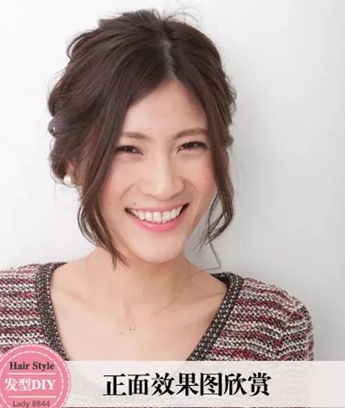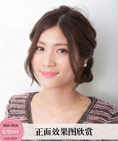 编发教程正面效果图 温婉甜美的编发盘发慵懒随性,搭配桃花红的粉色系妆容,变身甜美女生,一抹轻笑就足够吸引人。