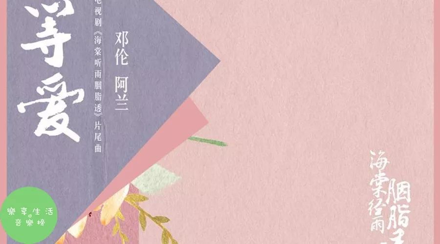 邓伦、阿兰首次共同携手希瓜音乐,为电视剧《海棠经雨胭脂透》打造片尾曲《等爱》。歌曲由刘畅作词,谭旋作曲,陈沁扬编曲。歌曲讲述了两个有情人再相遇时对缘分的憧憬。歌词、旋律直击人心,在邓伦和阿兰的演绎下,让人感受到等待中爱情的华丽。