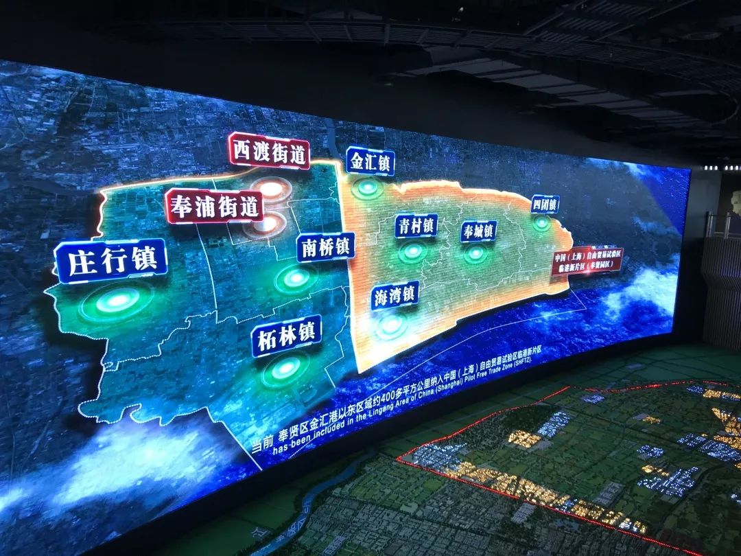 在全域模型区域,整个奉贤立体展示,一场流光飞舞的规划盛宴展现在眼前。