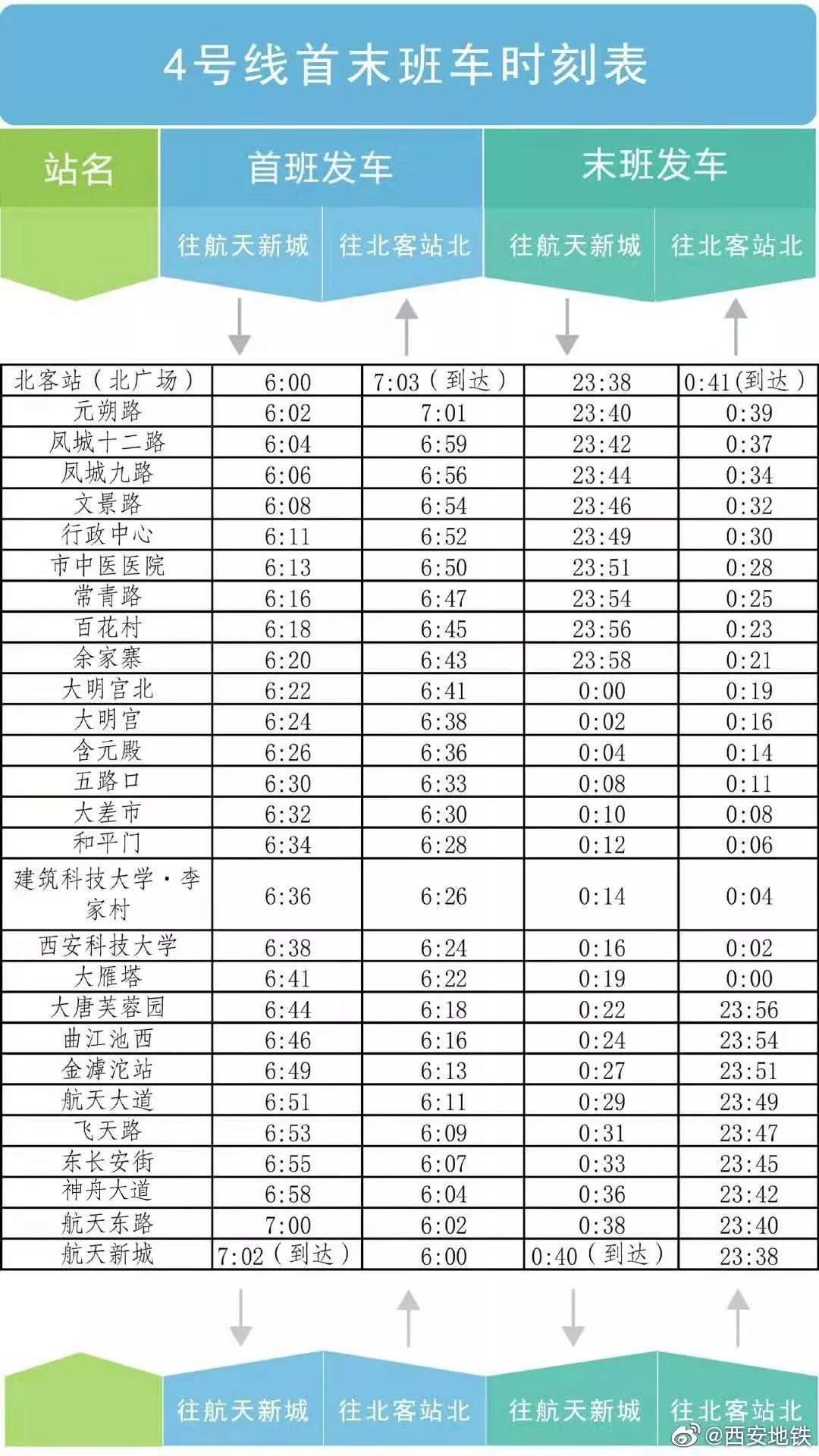 1号线,2号线,3号线,4号线最新首末班车时间表↓↓
