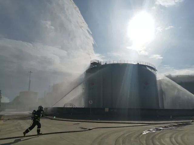 庆阳石化消防大队及庆阳站增援人员到达现场后,庆阳站就事故情况进行了火情交接,庆阳石化消防大队火情侦查员进行了现场侦查后,六台消防车分别在不同区域展开,对事故区域进行泡沫覆盖灭火。经过庆阳石化消防大队长达20多分钟的灭火战斗,现场着火区域全部扑灭。随后,庆阳石化消防大队停止了灭火战斗,接着,庆阳站组织1名现场处置人员身穿防火服、佩戴正压式呼吸器到总雨排沟确认有无油品外流。各项预定内容完成后,西安分公司与庆阳石化公司2019年度联合消防演练宣告结束。演练结束后,所有参演人员现场集合,庆阳站及庆阳石化消防大队负责人分别进行了总结讲评,各方准备充分、组织有力,演练内容科学合理,符合实际情况,本次联合消防演练取得圆满成功。并希望双方继续加强合作与沟通,持续做好庆阳站消防保驾工作,共同确保庆阳站管输作业安全平稳运行。