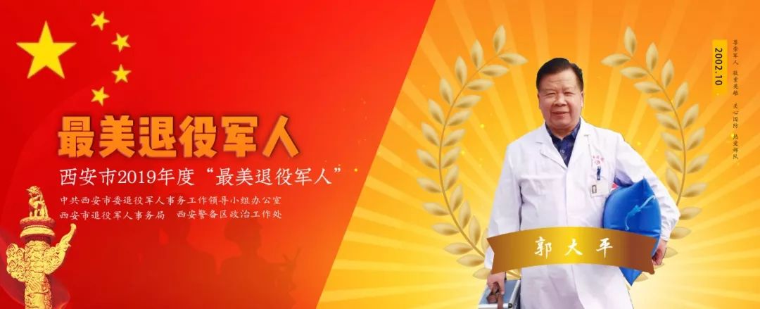郭大平,男,汉族,党员,1956年12月生,1974年12月入伍,2002年10月退役,现任西安市灞桥大平医院党支部书记、院长。多次参加并圆满完成“两弹一星”发射试验的医疗保健、防护救治任务。先后荣获科工委精神文明先进个人、学习雷锋先进个人、优秀共产党员等荣誉;获军队科技进步奖6项,荣立三等功三次。退役后,发扬部队艰苦奋斗的优良传统,白手起家,创办起了一家以“中医为主、中西医结合”,治疗颈椎病、腰椎间盘突出症、强直性脊柱炎等疾病的大专科、小综合性医院。郭大平也荣获陕西省模范退伍军人、陕西省模范军转干部、陕西省自主创业先进军转干部、西安市模范军转干部、优秀共产党员、最美医师称号。中国网《中国人物》栏目曾以《郭大平:矢志终圆济世梦》为题,对其事迹予以报道;央视军事节目中心《军旅人生》栏目曾以《灞柳风雪逐梦路》为题,对其事迹进行了专题报道。郭大平先后在《中国骨伤科杂志》《中国医药》《陕西中医》等业界重点期刊上发表学术论文,在多个医学杂志上发表有关颈肩腰腿痛的病因、分型、诊断、治疗、预防等科谱知识文章100余篇,并历时16年编著的近百万字的《神州神草500味》一书。在灞桥大平医院开始走上正轨之后,医院党支部当即作出决定:军人、退役军人检查就诊优先;每年的八月一日到三十一日,为退役军人免费检查、诊断、治疗,这项举措已坚持了16年之久,先后接诊现役军人、退役老兵两百余人。在郭大平的心里,退役只是阵地的转移,修医德、行仁术,不断努力弘扬和践行大医精诚、大爱无疆、救死扶伤的医师精神,是他此生孜孜以求的信念和追求。